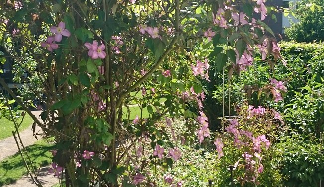 1.400 qm großer Familiengarten. In verschiedenen Gartenräumen kann man den Garten zum Spielen, zum Chillen und für sportliche Aktivitäten nutzen. Zahlreiche Stauden, Rosen und Dahlien sind in vielen Jahren in den Garten eingezogen. Einige selbst hergestellte Dekoartikel verschönern die Beete.
